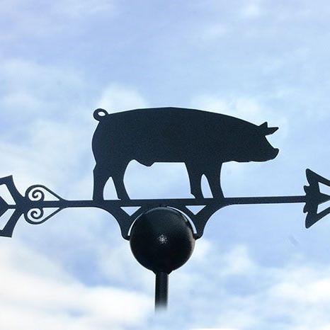 This pig shaped outdoor weathervane creates an instant decorative feature. With a strong steel construction (3mm thick) and coated with a durable antique black polyester powder over an iron phosphate primer.